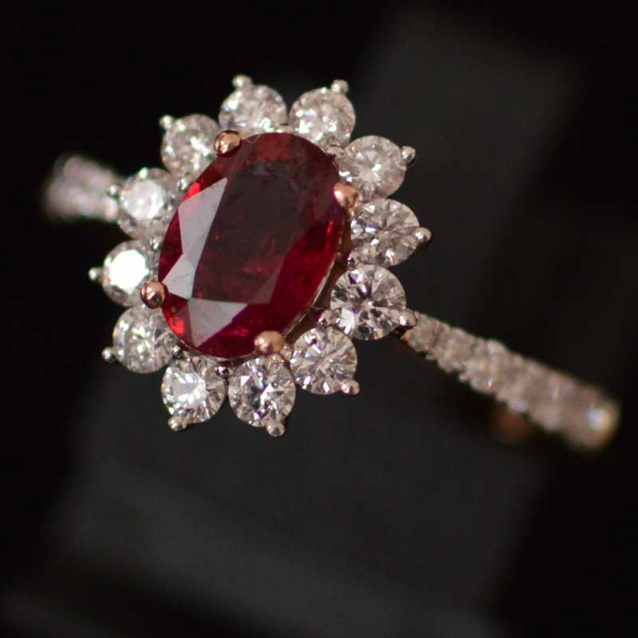 The 0,87 ct ruby has a rare and beautiful intense red colour and measures 7,2 x 5,1 x 2,3 mm.