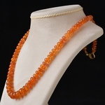 A three strand antique Dutch coral necklace comprising 102 tonneau-shaped beads measuring from 9 to 11 mm diameter, on a 14K gold Volendam clasp (45 x 42 x 25 mm) with Filigree and Cannetille work, the inset depicting a Dutch fishing boat.