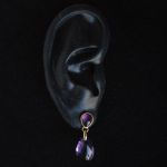 The earrings presented here are made of two pear shape cut Amethyst cabochons and two drop shape cut Amethyst cabochons.