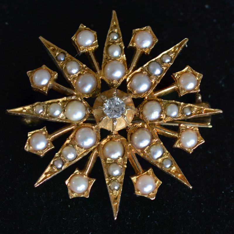 Antique seed pearl and diamond star shaped brooch and pendant.
