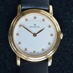 An 18 karat yellow gold open face quarter repeater pocket watch. White enamel dial with roman numerals, small seconds at 6 o'clock, gold arrow hands with a diamond (lollipop) inset , 18K yellow gold hinged caseback, 18K yellow gold inner cuvette case, manual wound movement, in good condition. One year warranty.