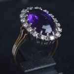 1950s Amethyst and Diamond cluster ring - 14 karat Yellow Gold, Amethyst, Diamonds Features: 6.0 carat Oval cut Amethyst 0.7 carat total Round Brilliant Diamonds, Diamond colour Wesselton (G-H) diamond clarity VS-Si.